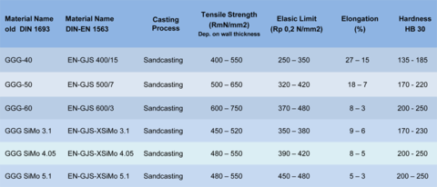 For the comparison of the mechanical characteristics of our most used alloys we developped this overview. The datas are valid for separated casted test bars. The material properties „in the cast part “can deviate partially substantially from those of the probes.